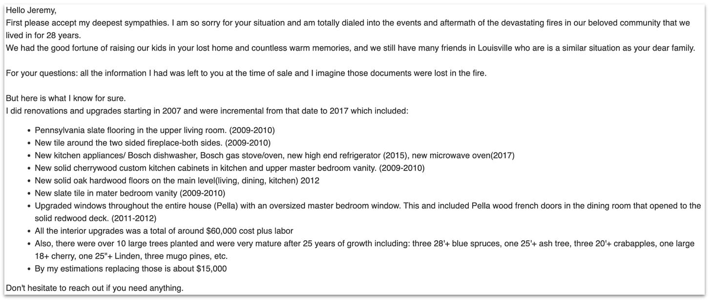 John, our neighbor, had the email address of the original owner. On a whim, I emailed him about our situation. And he sent a prompt, thoughtful response expressing his condolences and finishing it off with a bulleted list of all the upgrades they made and when.